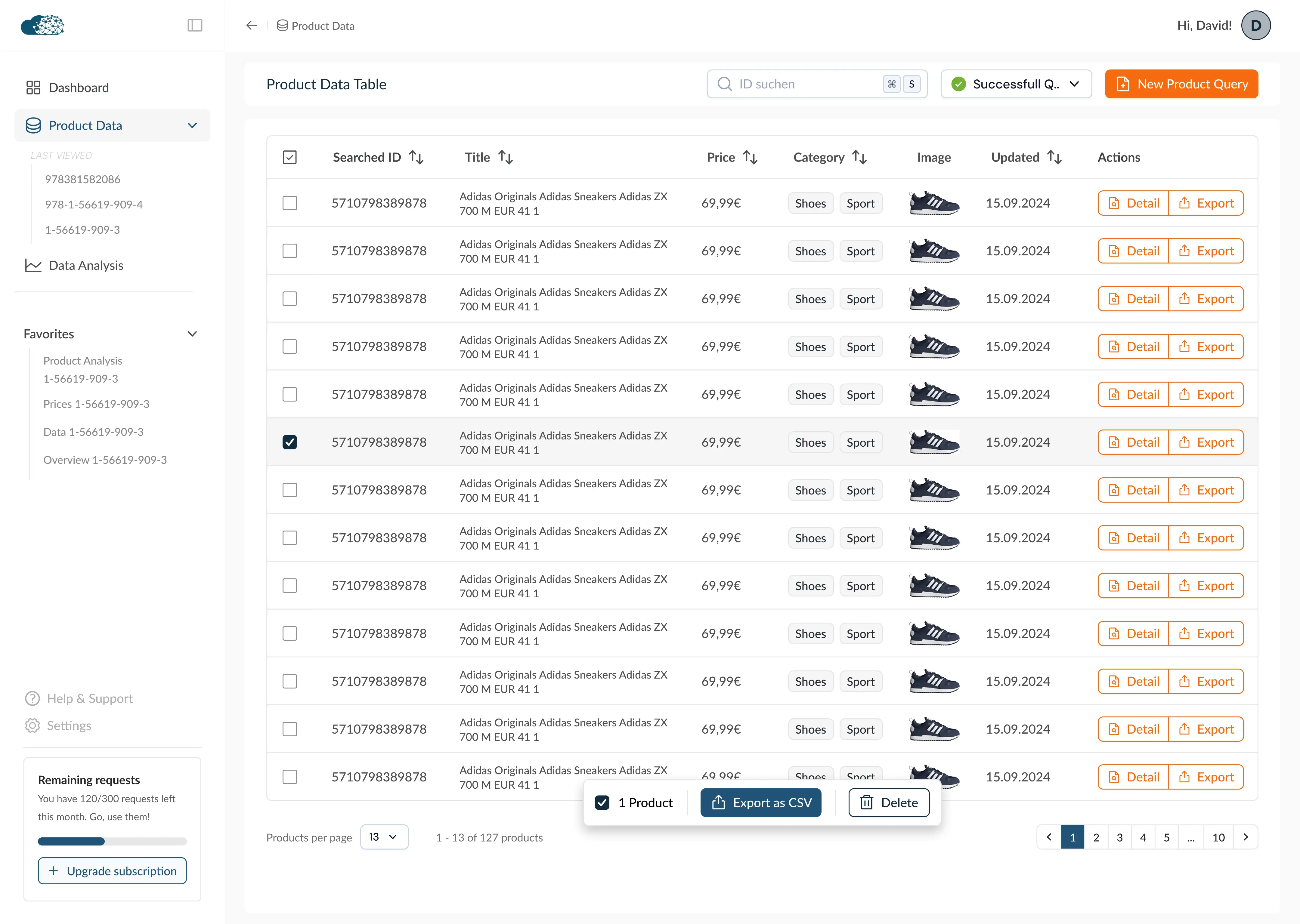 Choose the products from your shop’s list that you want to enrich with additional information from the PDC. You just need a relevant identifier like GTIN, UPC, EAN, or ISBN.